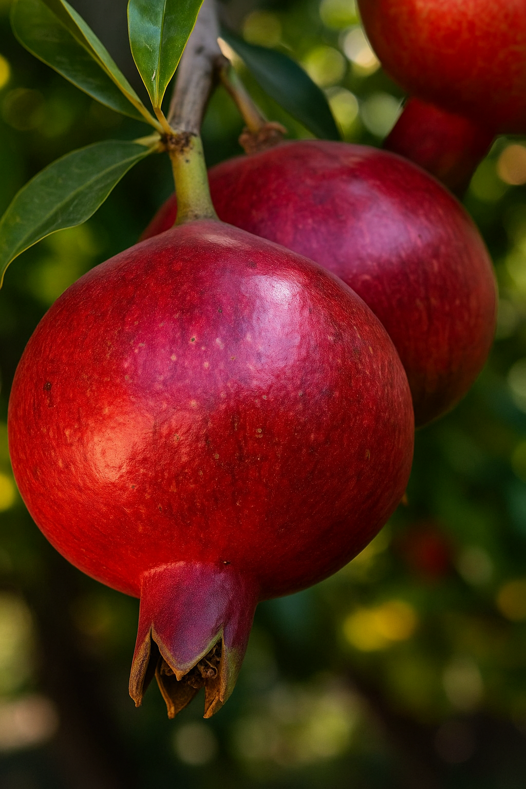 Granadas de intenso color rojo, jugosas y con alto contenido de antioxidantes, reconocidas por su sabor equilibrado y calidad.